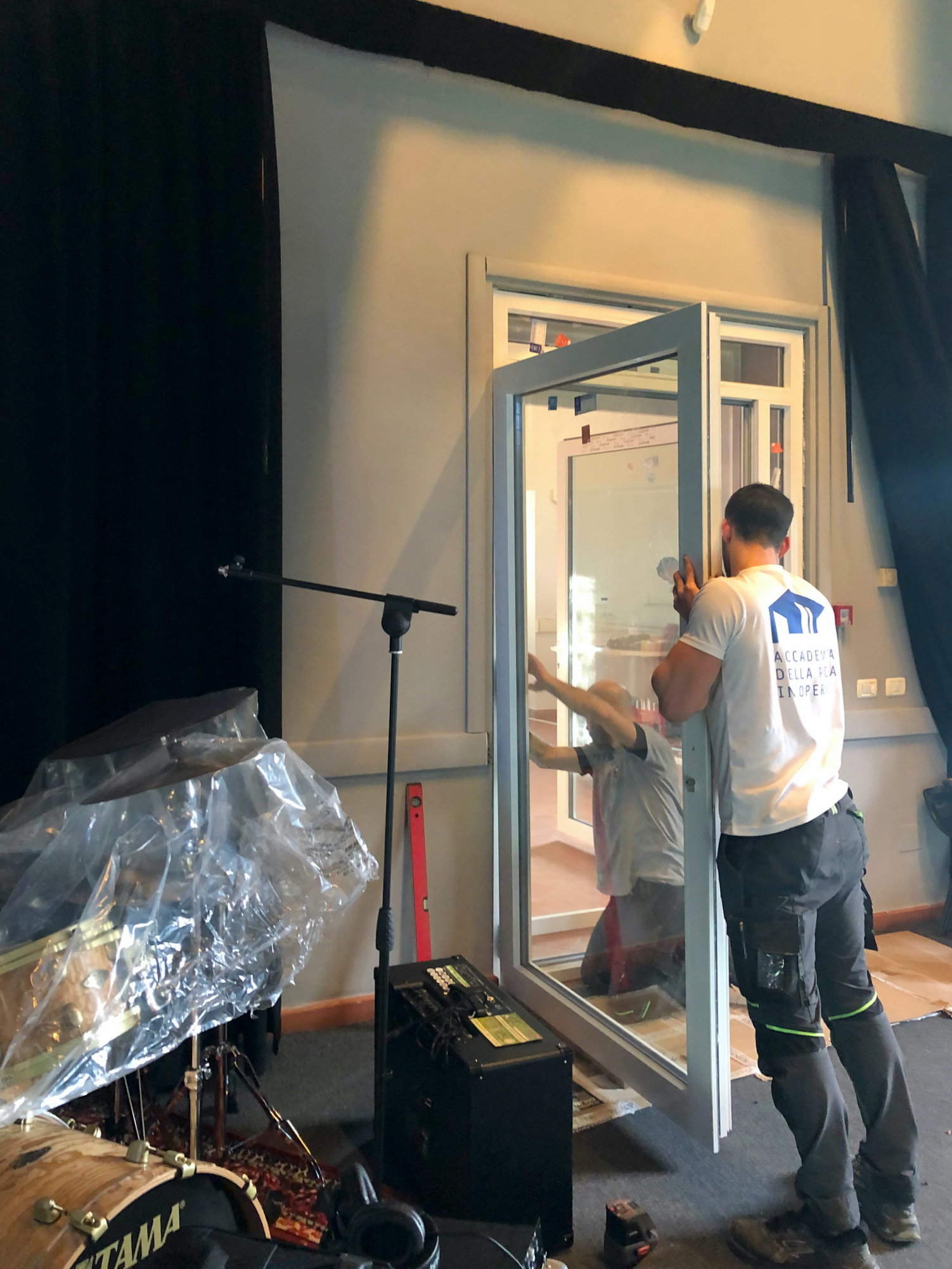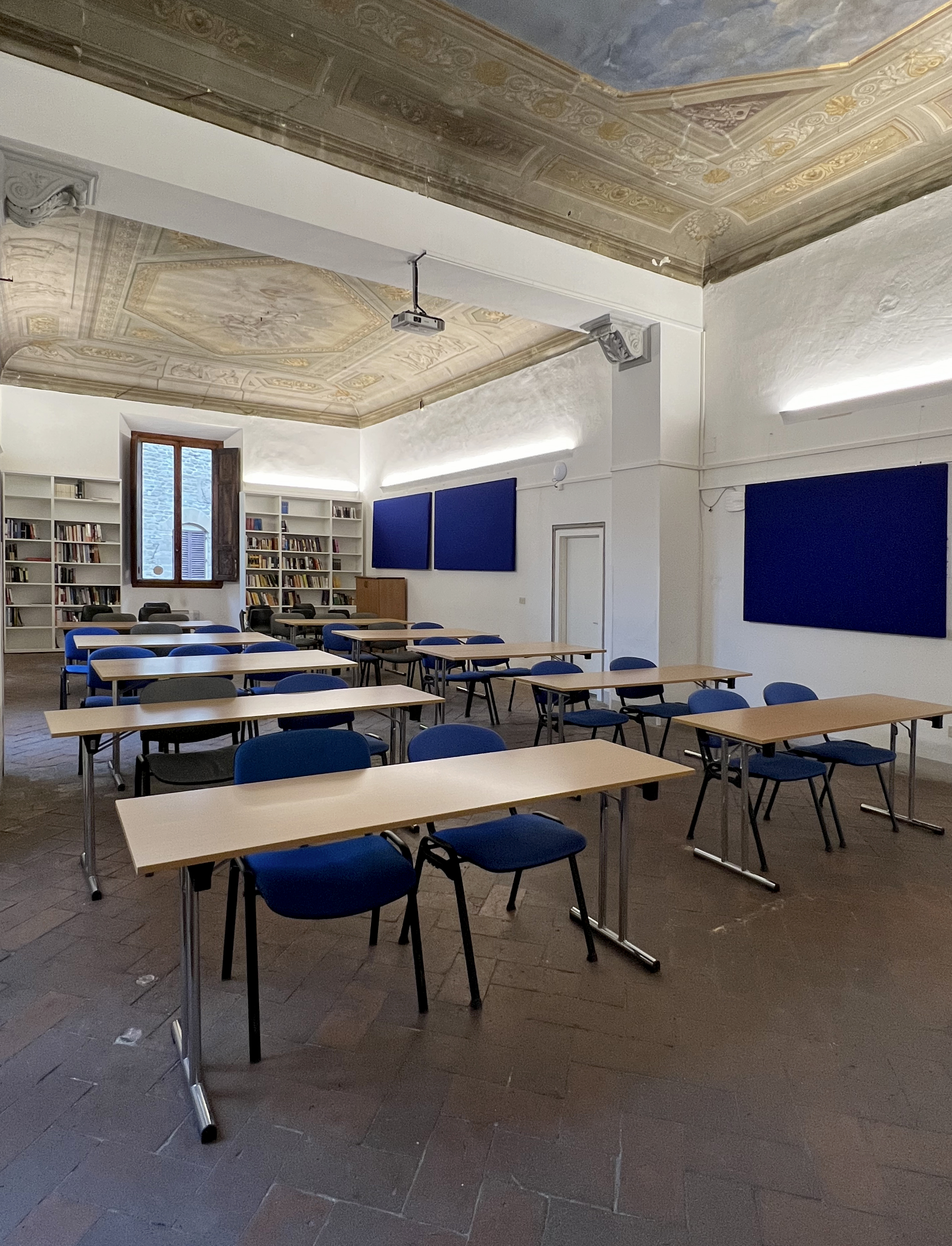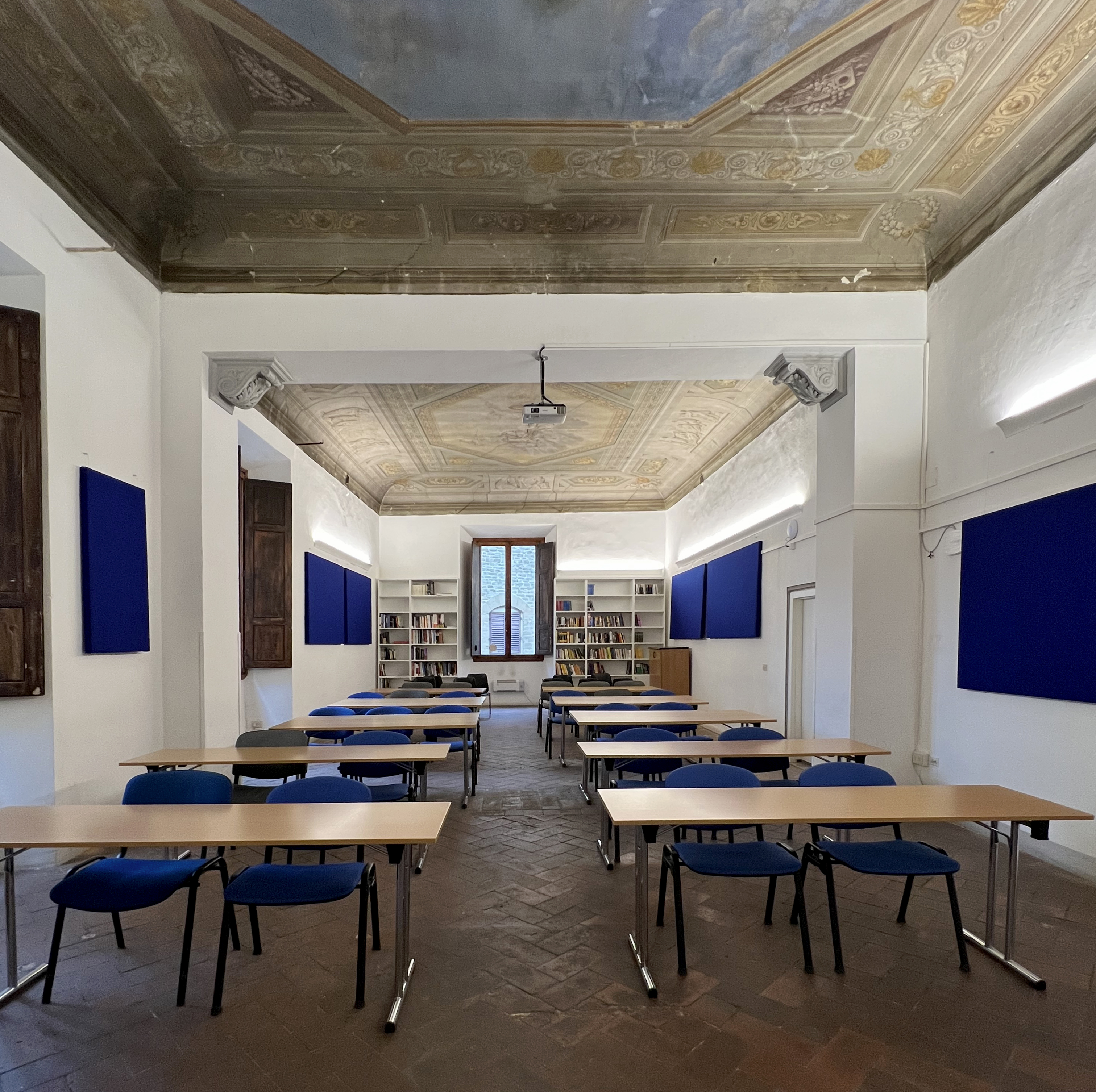 Realizzazione e installazione di pannelli fonoassorbenti per la scuola internazionale AIFS Global Education Center di Firenze.
