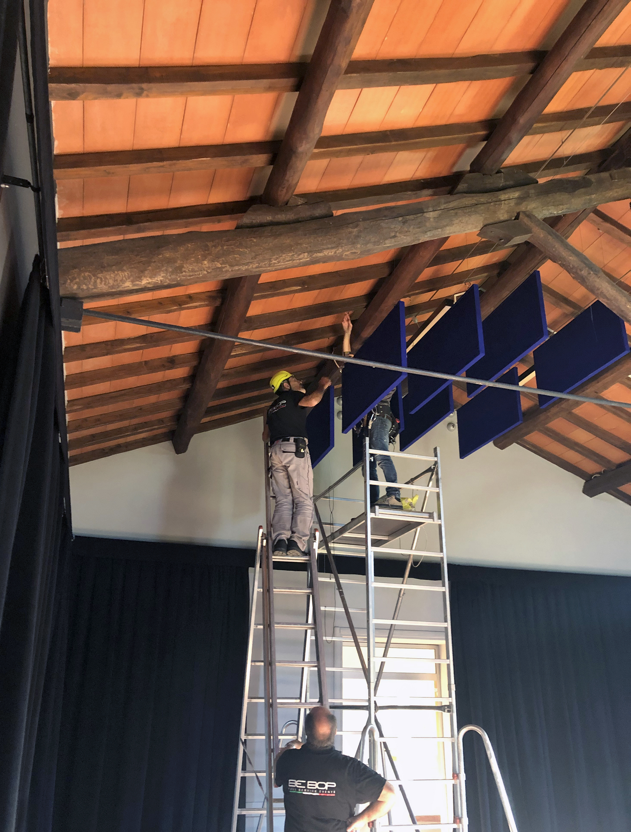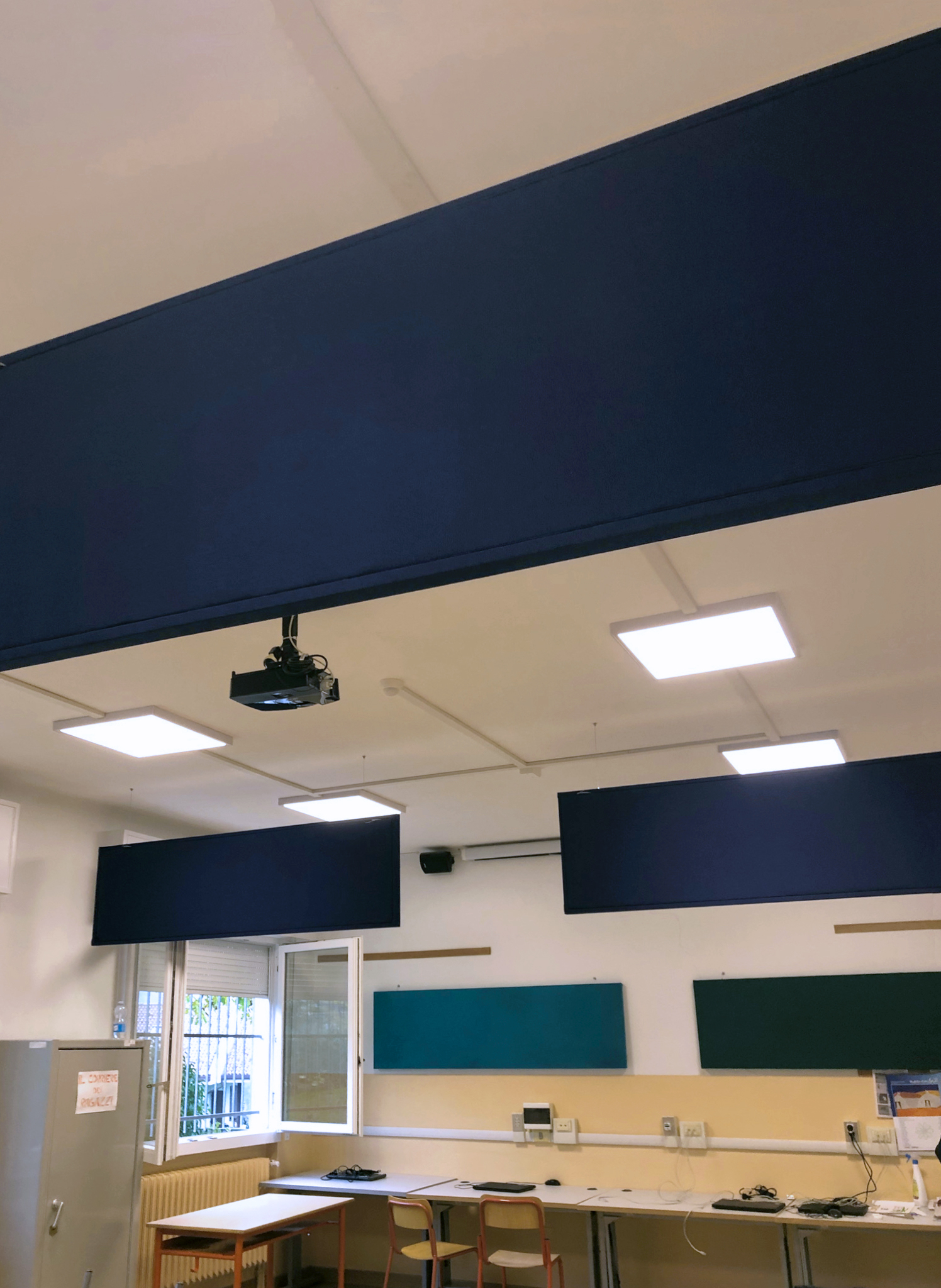 Realizzazione e installazione di pannelli fonoassorbenti presso una scuola secondaria di primo grado.